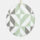 Sage Green and Silver Geometric ZigZag Ceramic Ornament