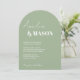 Sage Green and White Arch Minimal Wedding Invitation. Celebrate your love with this elegant sage green wedding invitation. The unique arch shape adds a modern touch to a classic design, featuring the names of the happy couple in a beautiful script and bold serif font. This invitation is perfect for any couple looking for a sophisticated and minimalist announcement of their special day. The soft sage green hue evokes a sense of natural beauty and tranquility, setting a serene tone for your wedding.