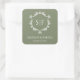 Sage Green and White Crest Monogram Wedding Square Sticker