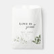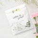 Custom-designed wedding cookie and candy favor bag featuring "love is sweet" sage green and white floral design.