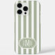Sage Green and White Monogrammed Stripes Case-Mate iPhone Case