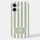 Sage Green and White Monogrammed Stripes Case-Mate iPhone Case