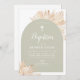 Sage Green Arch Boho Floral Boys Baptism Invitation
