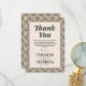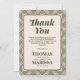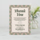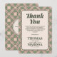 Express your gratitude with this elegant Art Deco-inspired wedding thank you card. Featuring a sophisticated geometric frame in sage green and dusty rose, the front provides a beautiful space for your personalized message of thanks. The reverse side showcases a full-patterned design with a classic monogram. A perfect, high-end way to thank your guests while maintaining the modern vintage aesthetic of your wedding suite.