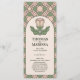 Guide your guests through your ceremony with this elegant Art Nouveau wedding program. Featuring a sophisticated palette of sage green and dusty rose, this double-sided card includes space for your order of service on the front and wedding party details on the back. The delicate botanical rose illustration and vintage geometric border add a timeless touch to your wedding day.