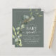 Budget Sage Green Eucalyptus Greenery Succulent Botanical Watercolor Spring Gender Neutral Baby Boy or Baby Girl Baby Sprinkle Shower Invitations on white background - includes beautiful and elegant script typography with modern botanical leaves and greenery for the special Mother to Be celebration.