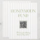 A modern honeymoon fund sign featuring soft beige vertical stripes paired with refined sage green typography. Designed with a clean layout and integrated QR code, it offers a simple and elegant way for guests to contribute to your honeymoon.
