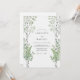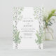 This design features a serene forest scene with slender white birch trees and delicate green leaves. Fern fronds anchor the bottom, creating a lush woodland atmosphere. The palette of sage green and natural wood tones evokes a tranquil outdoor setting. It is perfect for couples seeking an organic, nature-inspired aesthetic for their special day.