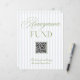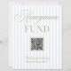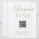 A modern honeymoon fund sign featuring soft blue vertical stripes paired with refined sage green typography. Designed with a clean layout and integrated QR code, it offers a simple and elegant way for guests to contribute to your honeymoon.