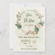 Beautiful romantic wedding save the date invitation featuring sage green and blush flowers and some leaves .