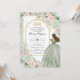 Sage Green Blush Pink Floral Princess Quinceañera Invitation