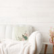 Beautiful romantic throw pillow featuring sage green and blush pink flowers and some pretty leaves .