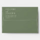 A minimalist boho calligraphy sage green wedding envelope. As you see it features white color script . With plain sage green background. And customizable return address info.