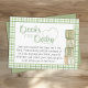 Invite guests to bring a book instead of a card with this sage green “Books for Baby” enclosure card. Designed with hand-painted vintage baby blocks and soft gingham for a sweet cottage-style touch. The gentle watercolor textures create a warm and timeless look that pairs beautifully with any sage green baby shower theme. Customize the wording to match your event.
