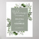 This elegant sage green botanical floral wedding welcome sign can be personalized with your information in modern typography. Designed by Thisisnotme©