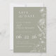 Perfect for couples planning a garden, outdoor, or timeless wedding, this save the date creates a calm and sophisticated first impression. The muted sage green background paired with airy botanical details evokes a fresh, organic feel that complements a wide range of wedding styles.