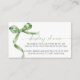 Complete your baby shower invitation set with our charming Sage Green Bow Display Baby Shower Enclosure Card. Featuring a modern green bow design, this enclosure card is perfect for providing guests with important details such as registry information, directions, or special notes. The elegant design adds a delicate touch to your baby shower theme, while the high-quality printing ensures it matches your invitations beautifully. Ideal for creating a cohesive and stylish baby shower stationery set.