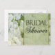 White hydrangea with sage green pin stripe accent and Bridal Shower in script. Easily add bride's name to the front - details on the back - and pop in the mail.