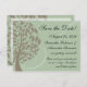 Save the Date! Soft, natural and scenic outdoor nature design in color shades of sage earthy green and soft earth brown. Stylized modern tree shape with flowing white swirls in the background. Some products available on recycled and earth friendly papers.