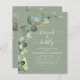 Budget Brunch and Bubbly Eucalyptus Greenery Succulent Botanical Watercolor Emerald Green Spring Wedding Bridal Shower QR Code Invitations on white background - includes beautiful and elegant script typography with modern botanical leaves and greenery for the special Bride to Be celebration.