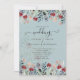 Featured here are pretty watercolor wild flowers in colors burgundy, blue andsage green leaves. The text is overlayed across the design which is opaque behind the text.