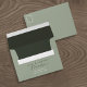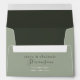 This elegant 5x7 wedding envelope features a modern sage green exterior with a deep forest green liner and stylish calligraphy names. A custom return address and monogram detail offer a refined, personalized finish—ideal for minimalist, botanical, or moody romantic wedding themes.