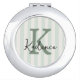 Sage Green Charcoal Custom Striped Circle Monogram Compact Mirror