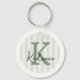 Sage Green Charcoal Custom Striped Circle Monogram Keychain