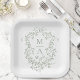 Sage Green Classic Floral Crest Monogram Wedding Paper Plates