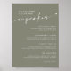 Our Sage Green Dessert Cupcake Menu Wedding Sign is a delightful blend of boho charm and elegant simplicity. Crafted on premium cardstock, it features delicate floral artwork in soothing sage green hues. Personalize it with your names, wedding date, and a mouthwatering dessert menu. Whether you’re serving cupcakes, pastries, or sweet treats, this sign sets the perfect tone for your special day!