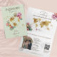 Modern Floral Invitation Wedding Destination, like passport. Golden world map the front page, with tropical flowers on the sage greenbackground. Perfect design for your summer beach wedding. Add the QR code of your wedding website