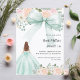 Sage green dress bow pink florals Sweet 16 Invitation
