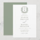 Sage Green Elegant Floral Crest Monogram Wedding Invitation