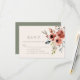 Collect your wedding responses in style with this elegant RSVP card featuring a romantic floral arrangement in shades of dusty rose, blush, and burgundy. The soft neutral front is paired with a rich sage green back that adds a sophisticated contrast and modern flair.