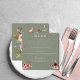 The predominant color of the menu is a rich and enchanting sage green, reminiscent of the earthy tones of fall foliage. This choice not only adds a touch of warmth but also resonates with the organic beauty of the season. The square format of the menu itself introduces a contemporary twist, offering a unique and modern canvas for the exquisite design elements.