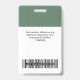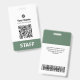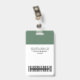 Easily personalize these business name badges without photo, with readable Qr Code (it always works!) and Bar Code and large business logo. This company id maker has a simple business name tag design in organic eco-friendly sage green and white colors fully customizable in front and back sizes, sans-serif basic and modern fonts and a professional and clear look, perfect for small business employee, boss, guests. These business id badges supplies are avaiable with lanyard, metal clip or with retractable. Enjoy excellent Zazzle's badge printing service! No minimum order, and the more you buy, the more you save. Bulk discounts are avaiable with multiple orders, for different employees too!