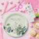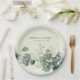 An elegant sage green eucalyptus paper plate featuring boho watercolor greenery perfect for wedding and baby shower celebrations.