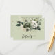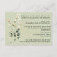 This elegant wedding details card features a soft sage green background adorned with a delicate arrangement of watercolor florals in muted ivory, eucalyptus, and dusty green tones. The front showcases a beautifully layered botanical cluster with subtle greenery and soft blossoms, paired with a graceful script “Details” title that adds a romantic, refined touch. The back continues the cohesive design with a minimal botanical accent along the side, providing a clean and organized layout for important wedding information such as reception details, accommodations, and website information. Perfect for modern, garden-inspired, or nature-themed weddings, this timeless design blends sophistication with soft, organic charm.