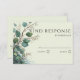 An elegant sage green eucalyptus wedding RSVP card with QR code for kindly reply. Features corner watercolor greenery and calligraphy script.