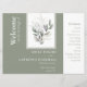 An elegant two-sided, flat wedding program - sage green and white in color with lovely eucalyptus leaves that's easy to update.