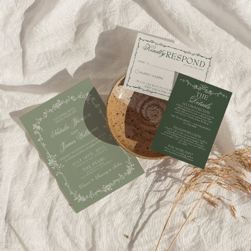 Sage Green Floral Boho Botanical Arched Wedding Invitation