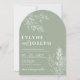Sage Green Floral Botanical Arched Modern Wedding Invitation