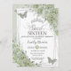 Sage Green Floral Butterflies Silver Sweet Sixteen Invitation