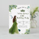 Show your guests how much you care with this one-of-a-kind, personalized invitation. It's a unique blend of modern and traditional elements that will be sure to set the tone for a memorable celebration. Make sure all of their friends and family come by with this elegant invitation. The design features a sparkly glitter dress adorned with pretty watercolor emerald green flowers and soft greenery, modern geometric frame and sweet fluttering butterflies. Click the "customize further" button if you wish to re-arrange and format the style and placement of the text.