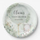 Sage Green Floral Elephant Baby Shower Paper Plates