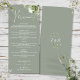 This elegant sage green floral botanical greenery leaves wedding menu can be personalized with your information in chic typography with your monogram initials on the reverse. Designed by Thisisnotme©