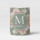 Sage Green Floral Watercolor Rose Pattern Monogram Pillar Candle