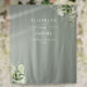 This elegant sage green greenery leaves wedding photo booth backdrop can be personalized with your names and special date. Designed by Thisisnotme©