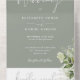 Sage Green Foliage QR Code Monogram Wedding All In One Invitation