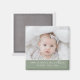 This fridge magnet features a fun script styled font "Hello, Baby" at the bottom edge of the your own baby photo above a sage green background with your baby's name and birth date in a modern clean crisp printed white font.. ,